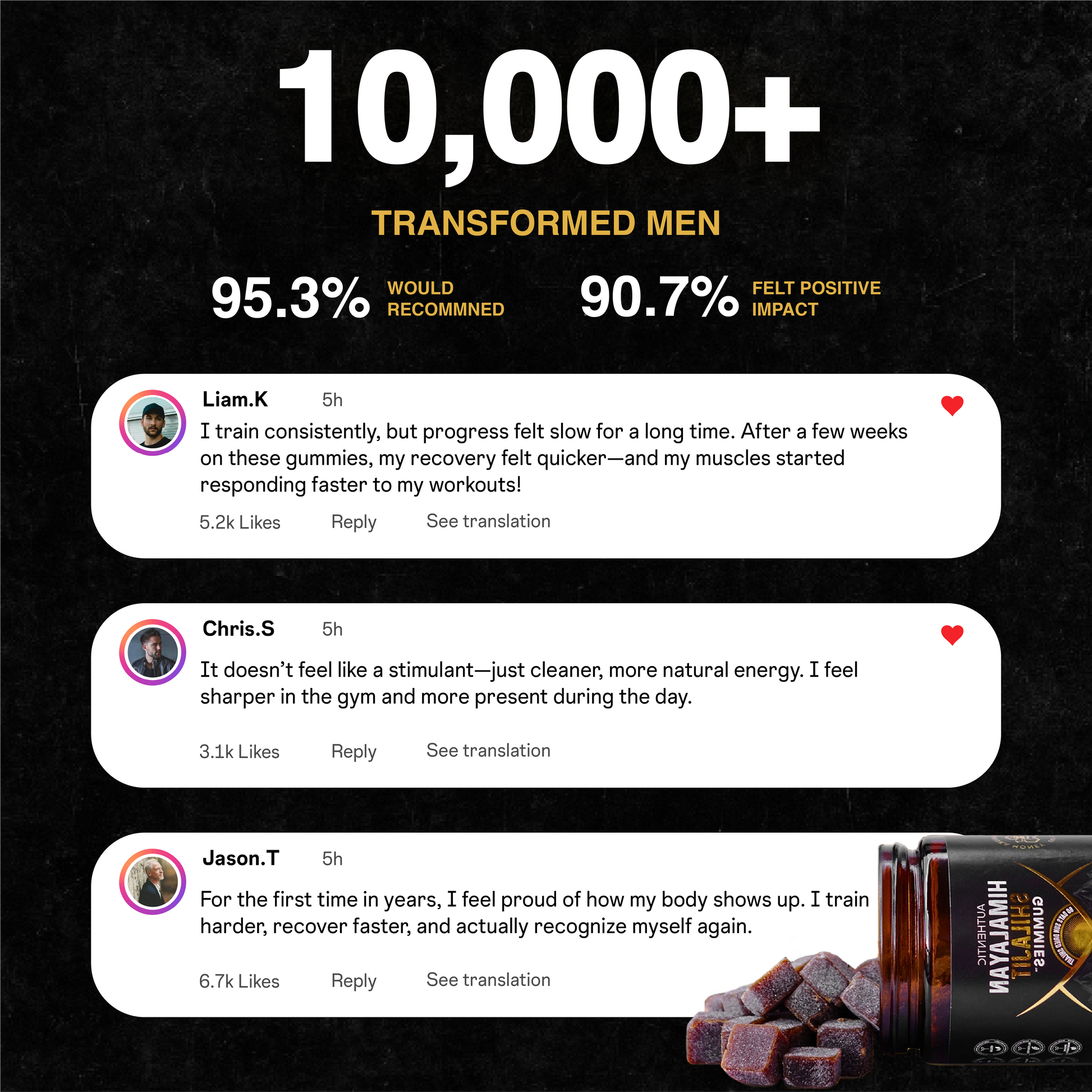 Purified shilajit helps support healthy testosterone — key for strength, energy & drive.